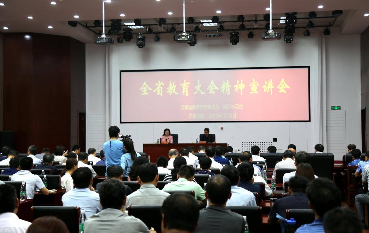 许昌市、漯河市驻地高校副职领导班子成员,教育局副职领导班子成员,各县市区教育局局长、普通高中校长和书记、中等职业学校校长和书记等聆听了宣讲会。(图文 宁智沛)