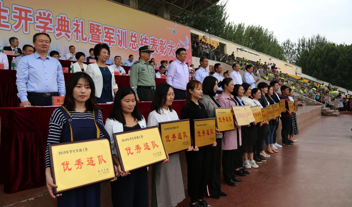 9月20日上午,bet36体育在线在羽飞田径场举行2019级新生开学典礼暨军训总结表彰大会。党委书记闫纪建,院长岳修峰,党委副书记孙海,纪委书记罗凤英,副院长崔斌、郭涛,工会主席高金星,许昌军分区党委常委、战备建设处处长陈福星出席大会并在主席台就坐。学校机关各部门和二级学院负责人、各团总支负责人、辅导员(班主任)和全体2019级新生共同参加军训会操和开学典礼。仪式由党政办公室主任潘春彩主持。
