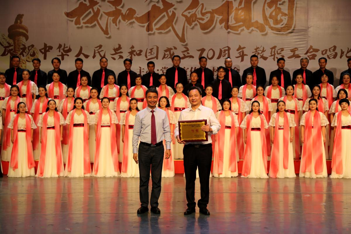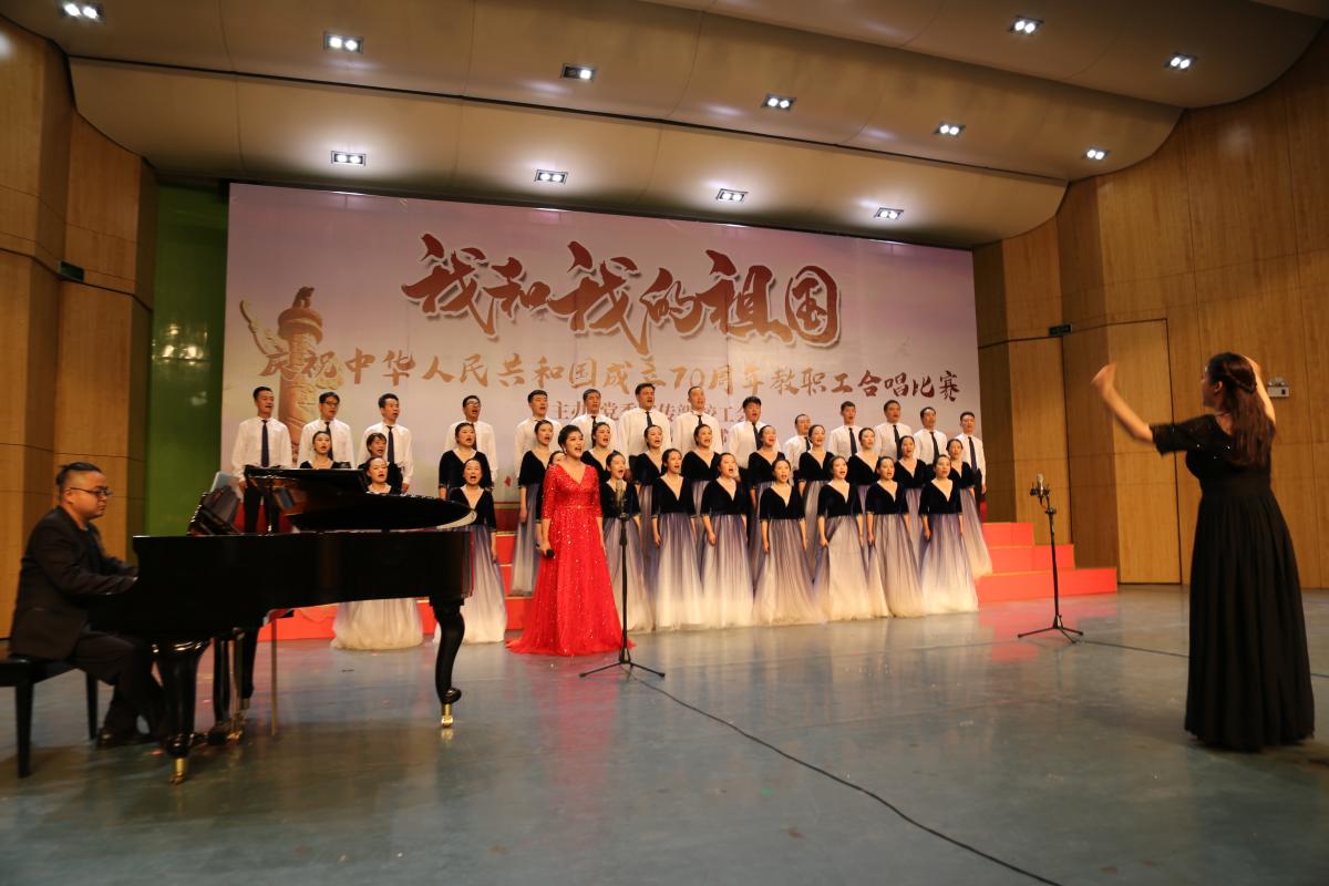 比赛在党群机关分工会、行政机关分工会、音乐舞蹈学院分工会带来的合唱《歌唱祖国》中拉开大幕,全体校级领导参加了合唱,观众挥舞国旗,齐声高歌,共同表达对伟大祖国的深深祝福。比赛中,来自全校29支分工会的教职工们满怀爱国热情,以歌铭志。《我的中国心》《我和我的祖国》《龙的传人》《今天是你的生日,中国》《江山》《映山红》《红旗飘飘》《国家》等脍炙人口的经典歌曲先后唱响,熟悉的旋律,深情的演唱,歌颂了新中国走过的70年光辉历程,抒发了教职工的爱国情怀,展现了教职工昂扬向上的精神风貌。bet36体育在线教职工合唱团、学生合唱团还带来了双双入选河南省教育厅举办的教育系统“歌唱祖国·出彩河南”庆祝新中国成立七十周年合唱比赛总决赛的《在太行山上》(新编)和《祖国万岁》。