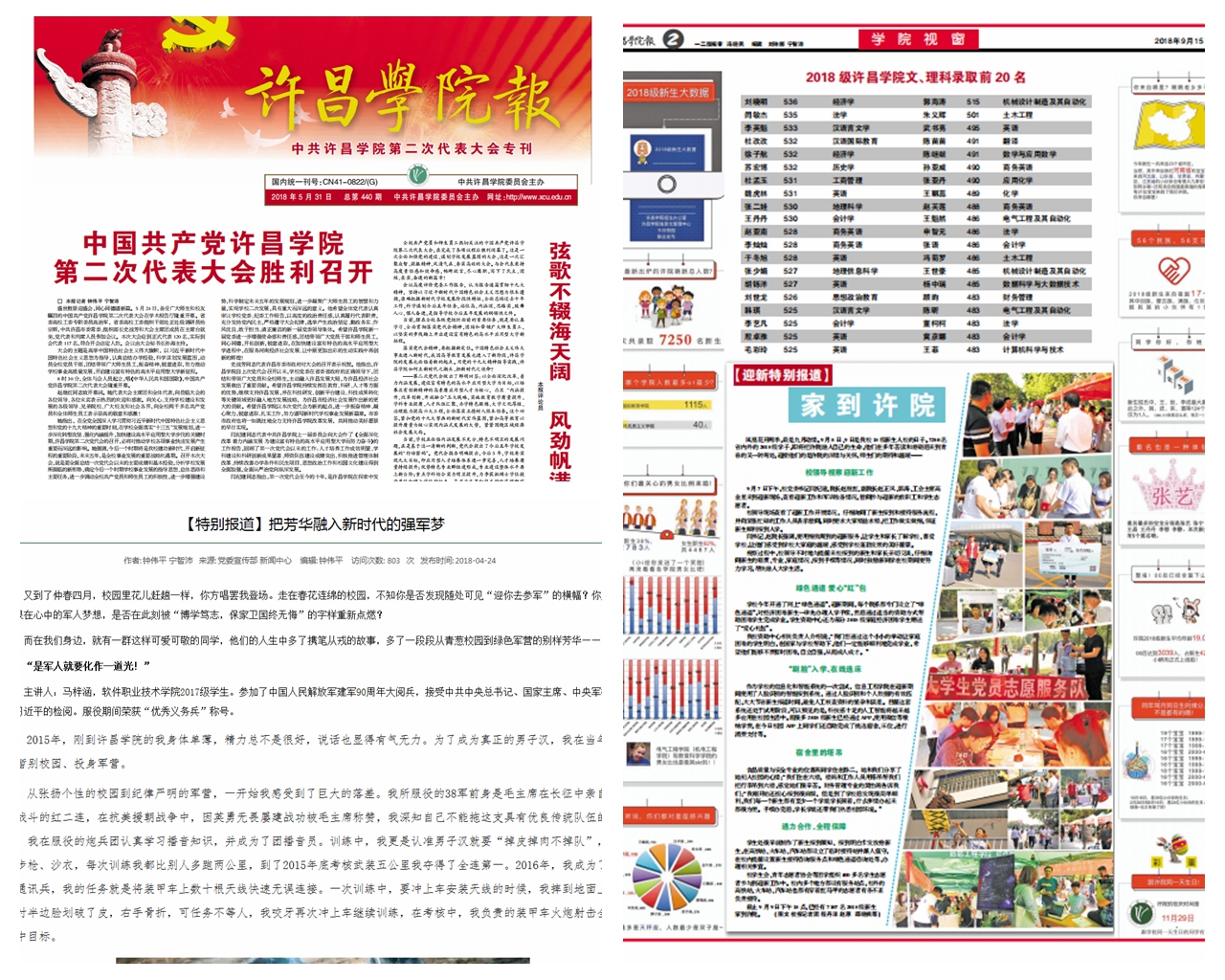 近日,中国高校校报协会公布了2019中国高校新闻奖获奖情况,在全国724所高校报送的3848篇参赛作品中,bet36体育在线党委宣传部(新闻中心、校报编辑部)的《把芳华融进新时代的强军梦》(钟伟平 宁智沛)《弦歌不辍海天阔 风劲帆满踏新程》(冯晓民 宁智沛)和《bet36体育在线报·迎新专刊》分别荣获通讯类二等奖、言论类三等奖,版面类三等奖。