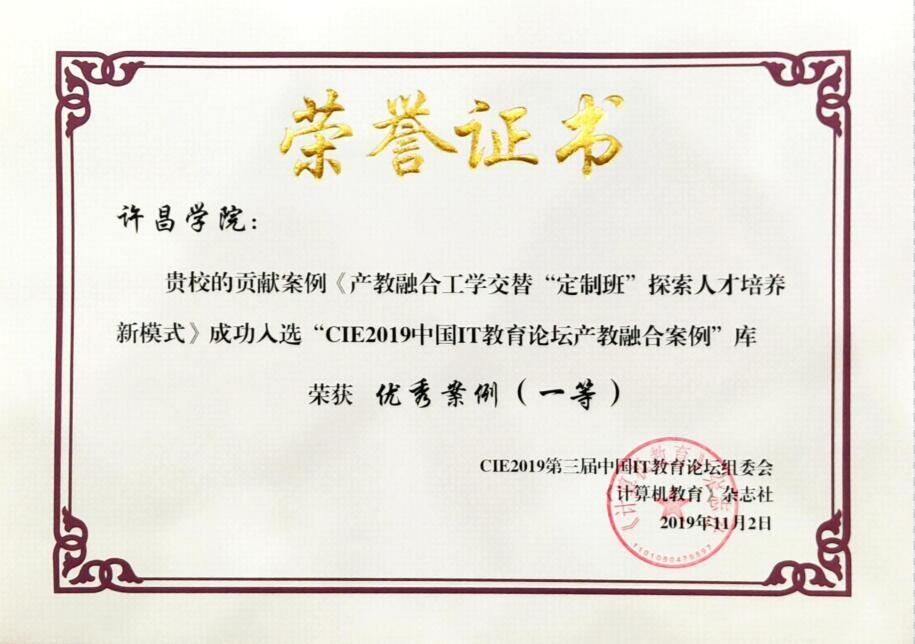 近日,bet36体育在线信息工程学院提交的案例《产教融合 工学交替 “定制班”探索人才培养新模式》成功入选“CIE2019中国IT教育论坛产教融合案例”库,并荣获优秀案例一等奖,据悉,全国共有六家单位获得该奖项。