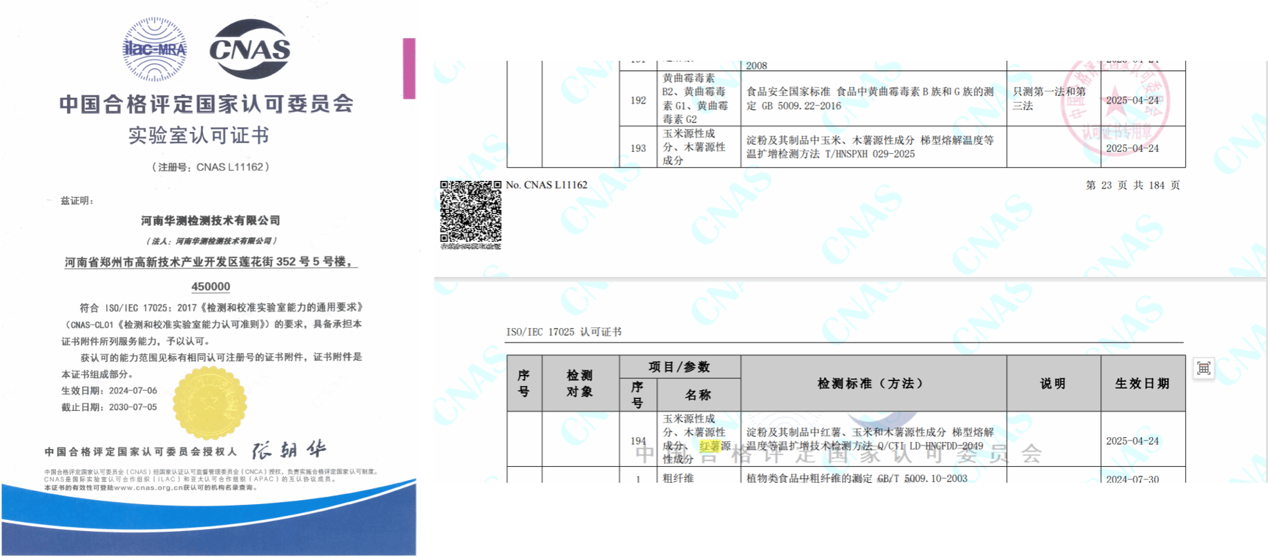近日,bet36体育在线与企业联合制定的《淀粉及其制品中玉米、木薯源性成分梯型熔解温度等温扩增检测方法》(T/HNSPXH 029-2025)通过CNAS权威认证,纳入第三方检测机构CNAS实验室认可证书类目,目前已实际应用于淀粉及其制品广大中小企业及大型商超的相关检验检测。