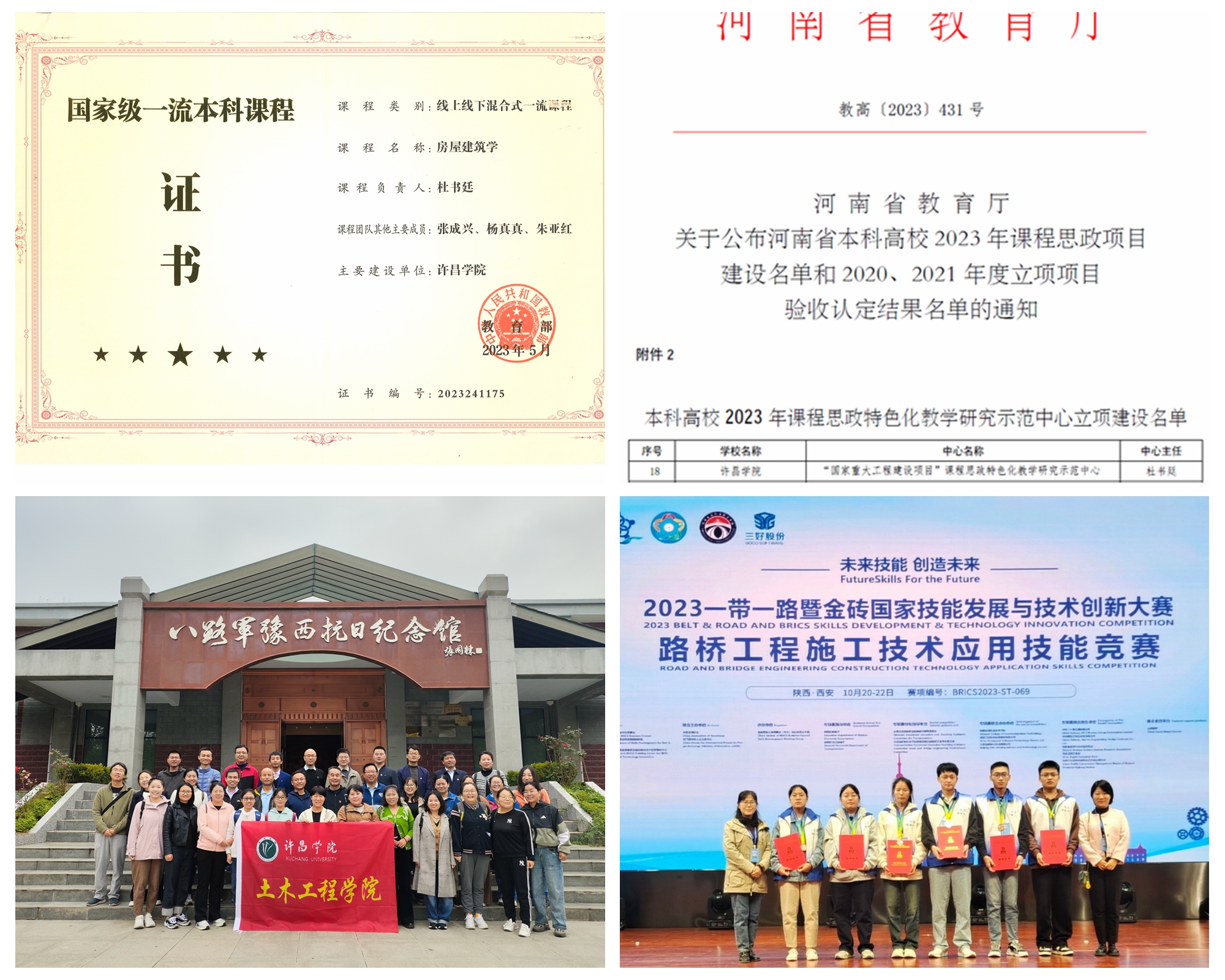 强化内涵建设,人才培养质量显著提升。学院党委充分发挥统筹作用,着力开展以“混合式”“课程思政”“应用型”为导向的课程改革,不断提高课程质量和效果。学院获批国家自然科学基金青年项目1项,国家级一流本科课程1门,参与共建国家级虚拟教研室1个,获国家级高等教育教学成果二等奖1项,省级一流本科课程6门,省级课程思政研究示范中心1个,学生获全国大学生结构设计信息技术大赛特等奖,在全国大学生结构设计竞赛等专业赛事中获奖100余项。